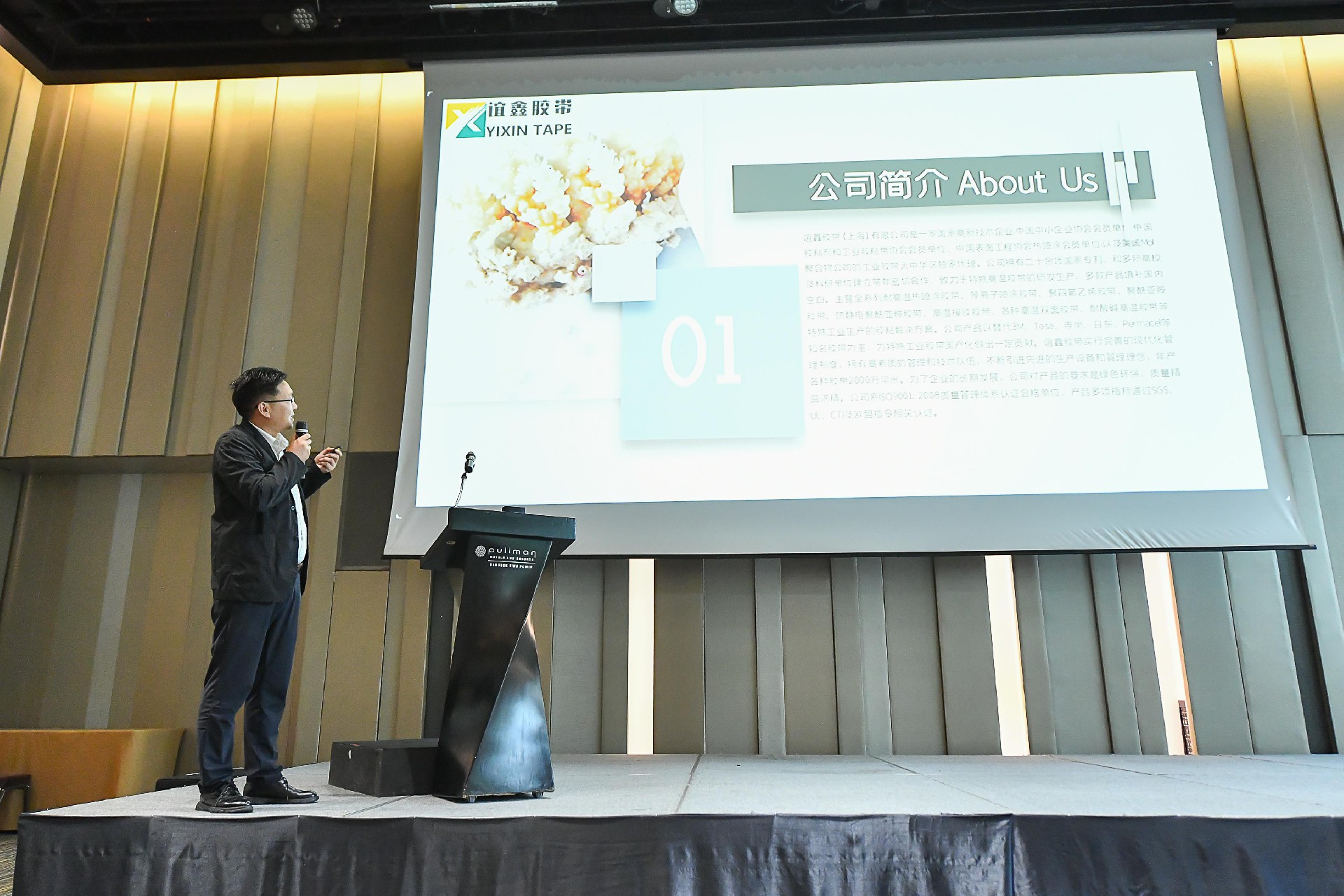 誼鑫膠帶(上海)有限公司總經(jīng)理饒凱舟在本次大會發(fā)言,向大會展示了誼鑫膠帶所有應(yīng)用的最新技術(shù)。