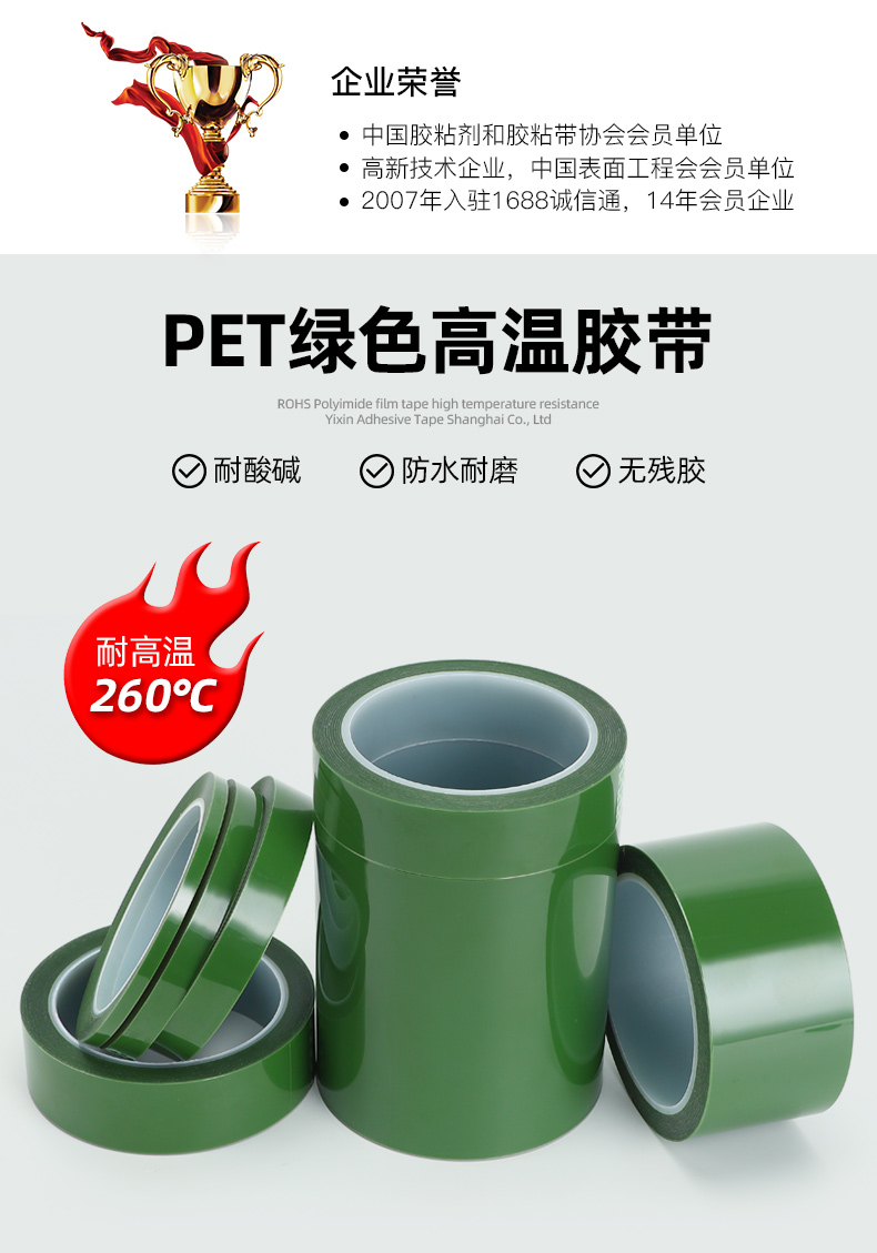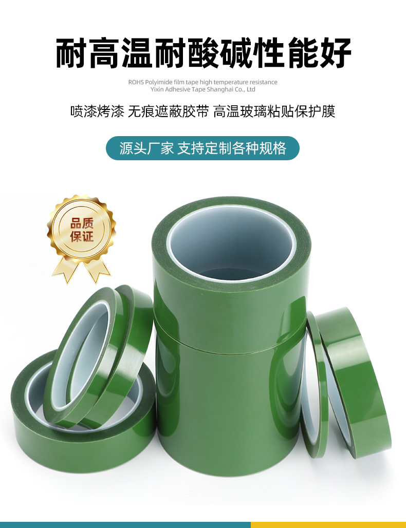PET綠色耐高溫硅膠帶耐酸堿耐候噴涂烤漆防水遮蔽保護(hù)膜膠帶